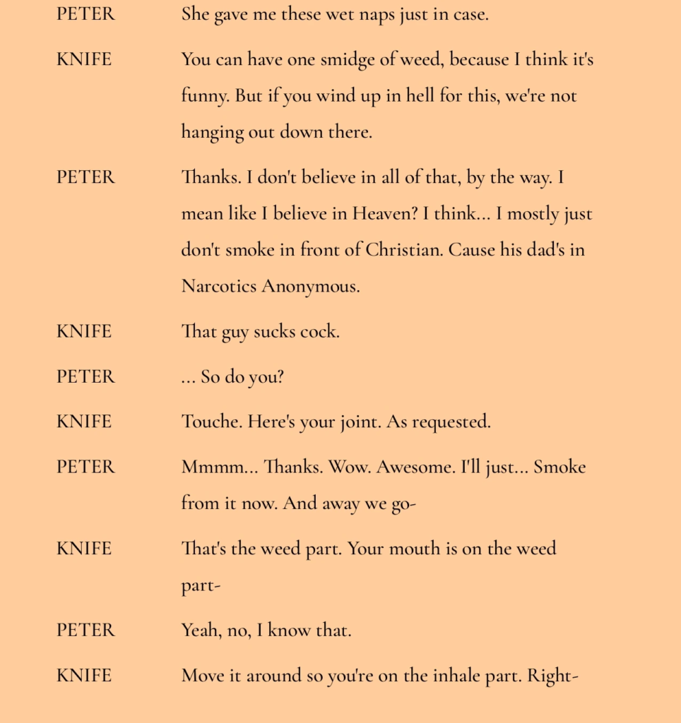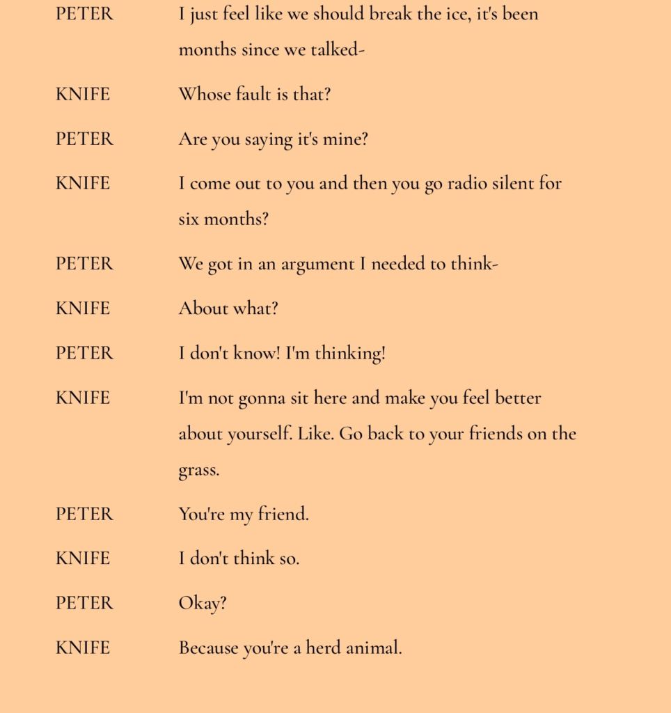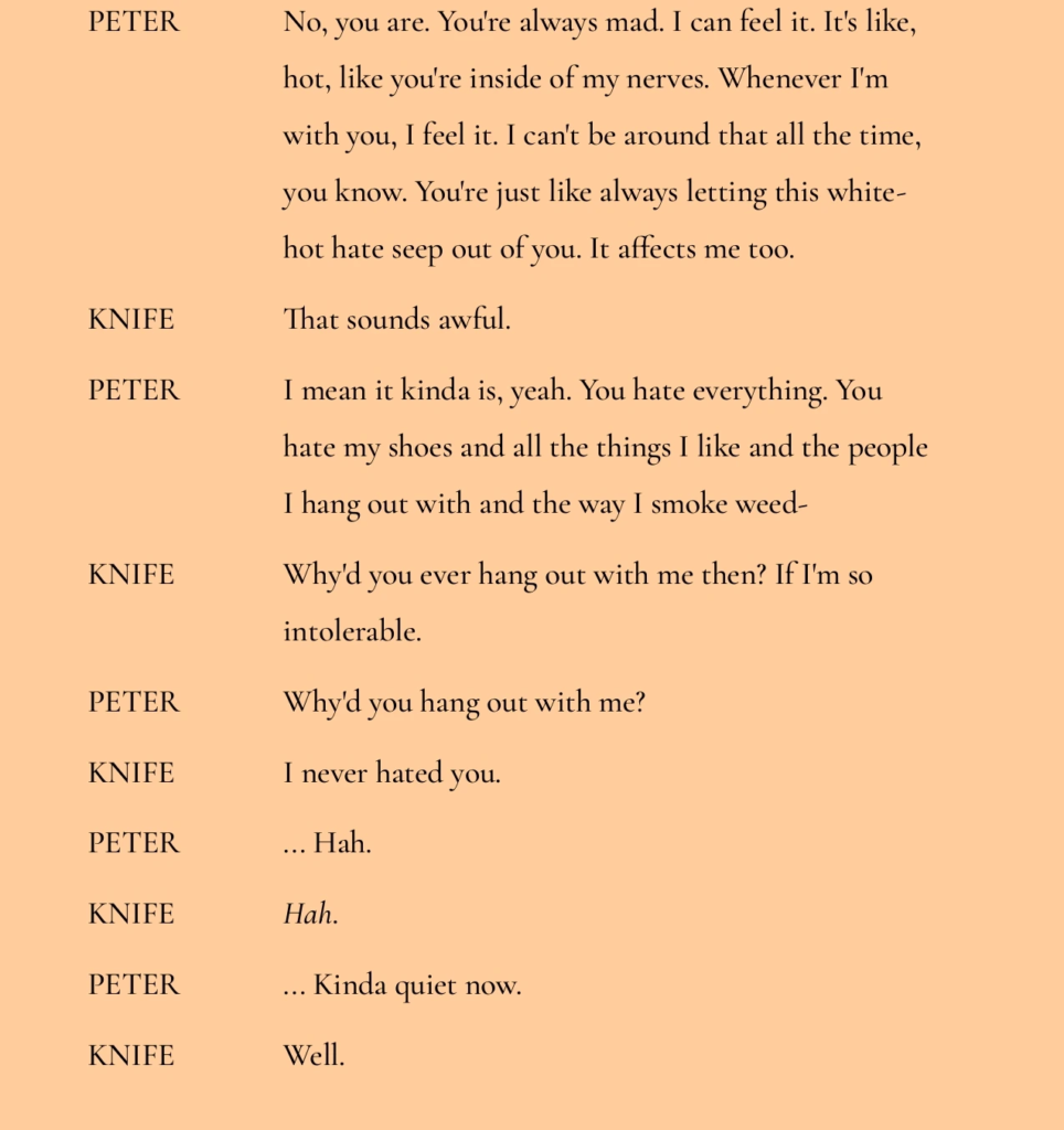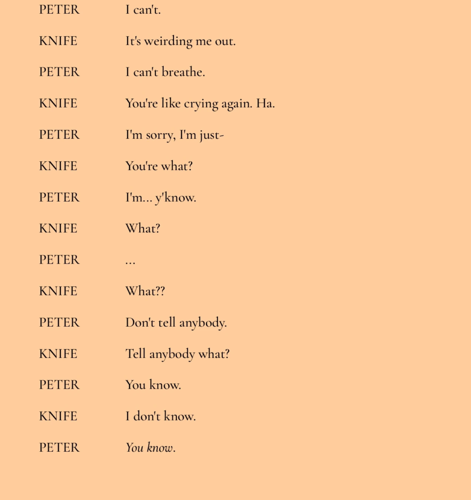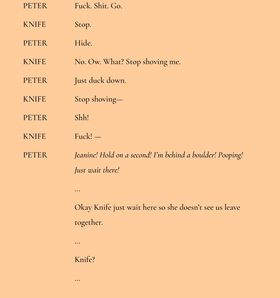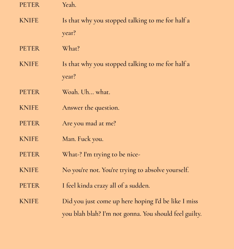 “Shut up. Just shut up about it. Who gives a fuck if you saw her? Which I seriously doubt, by the way.”